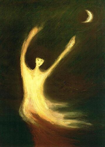 両手に握った枝ふたつ うつろな瞳の巫女(みこ)ひとり 花髪飾り 白い足袋(たび) 紅の袴(はかま) 紺の帯巫女は踊る リスになり 柳に揺れて 竹に跳ね 巫女は踊る 谷を抜け 沼を渡り 山を越え森のけものに囲まれて 素足の裏を舐められて 丸い月 ひとつ おっぱい …