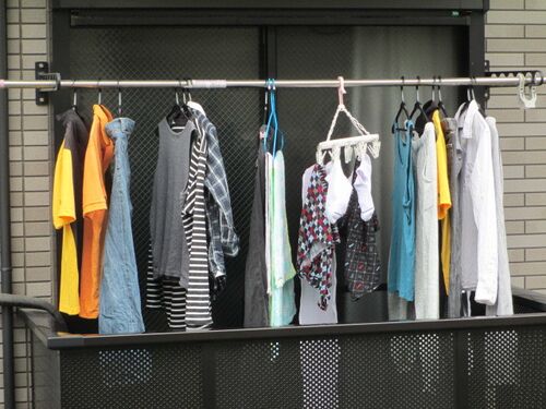 今日は朝から晴れて 洗濯するのに好い天気。 汚れてしまった旦那さんを お隣の奥さんが手洗いしました。 太って重い旦那さんを干すのは大変。 ベランダ越しに苦労しているのを見かねて 物干し竿に掛けるのを私も手伝ってやりました。 濡れたお隣の旦那さん、…